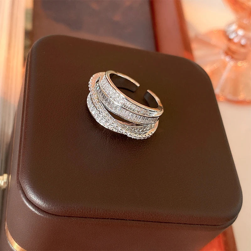 Este anel elegante, confeccionado em cobre de alta qualidade e cravejado com zircônia cúbica premium, foi criado para mulheres que amam sofisticação, destaque e presença.